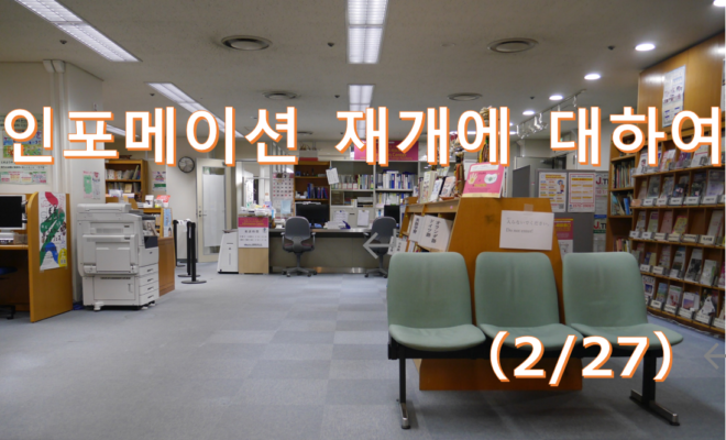 3월1일(월)부터, 인포메이션 센터의 이용을 다음과 같이 재개합니다.이용시간・월요일~금요일 9:00~19:00・토요일・일요일・축일 9:00~17:30이용가능한 서비스・외국인을 위한 상담창…