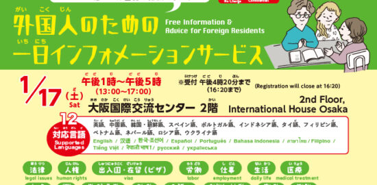 外国人のための「一日インフォメーションサービス」を開催します。外国人のいろいろな分野の相談に専門…