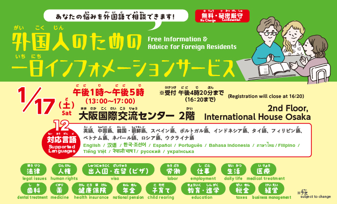 Enero 17,2026(Sabado) 13:00 – 17:00 (Magsasara ang tanggapan ng 16:20)